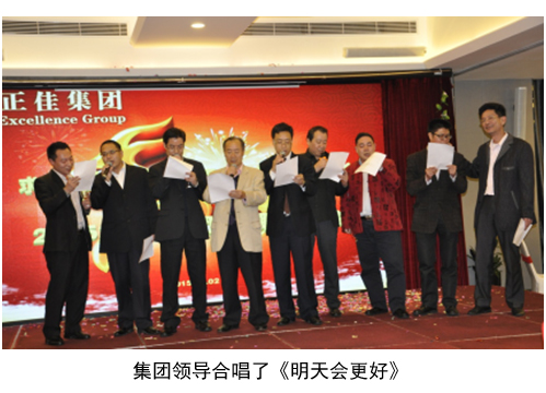 在正佳国际集团2015年迎新晚会上,郑总在台上向全体正佳员工致新年贺辞,回顾正佳2014年的风雨历程,展望正佳2015年的崭新篇章,并在晚会结束之际,集团领导合唱了《明天会更好》,希望正佳在未来蒸蒸日上,蓬勃发展。
